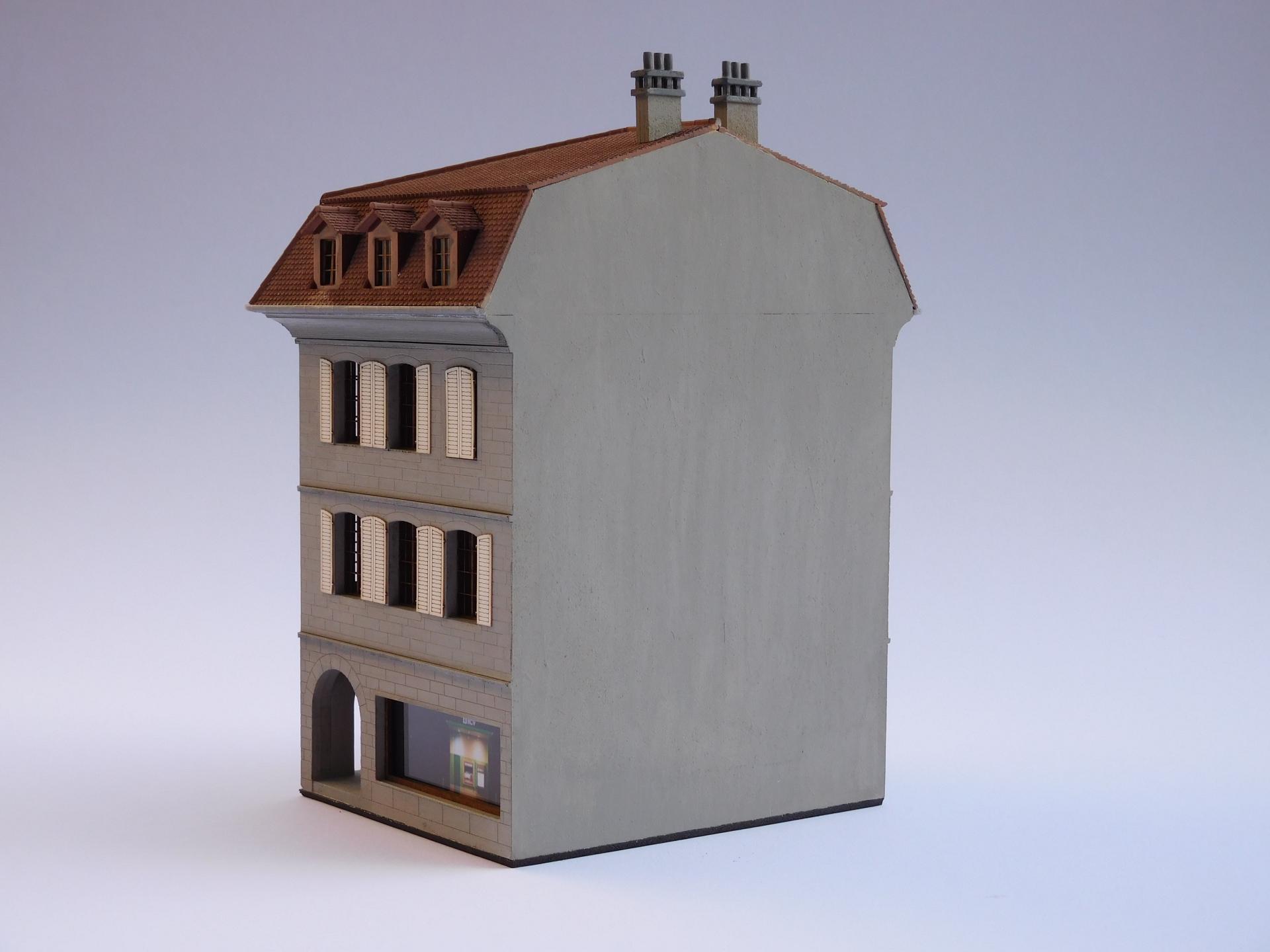 3 faces décorées, convient bien pour terminer une rue.