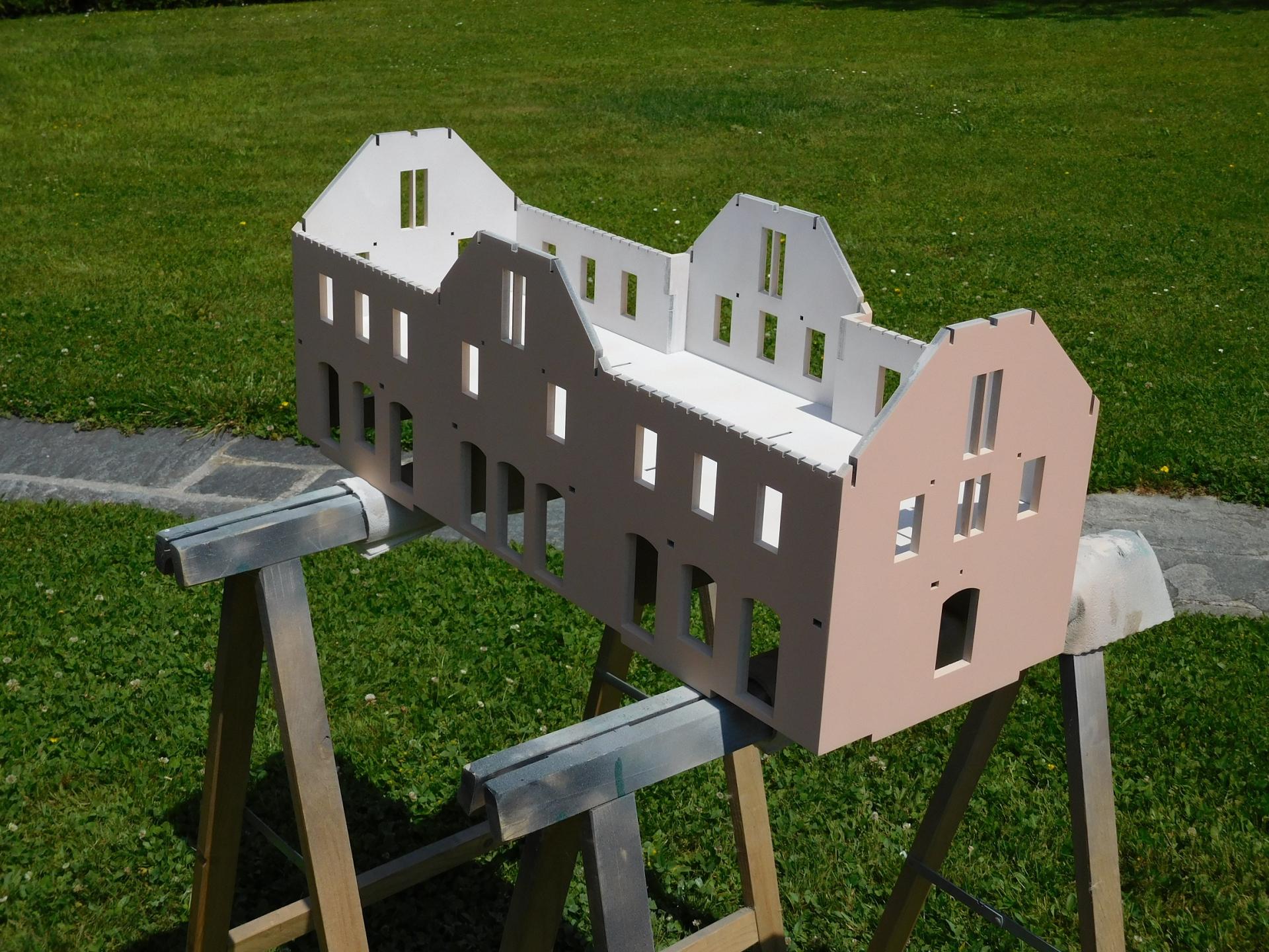 Pierres d'angles et cadres de fenêtres découpées, gravées et préencollées.