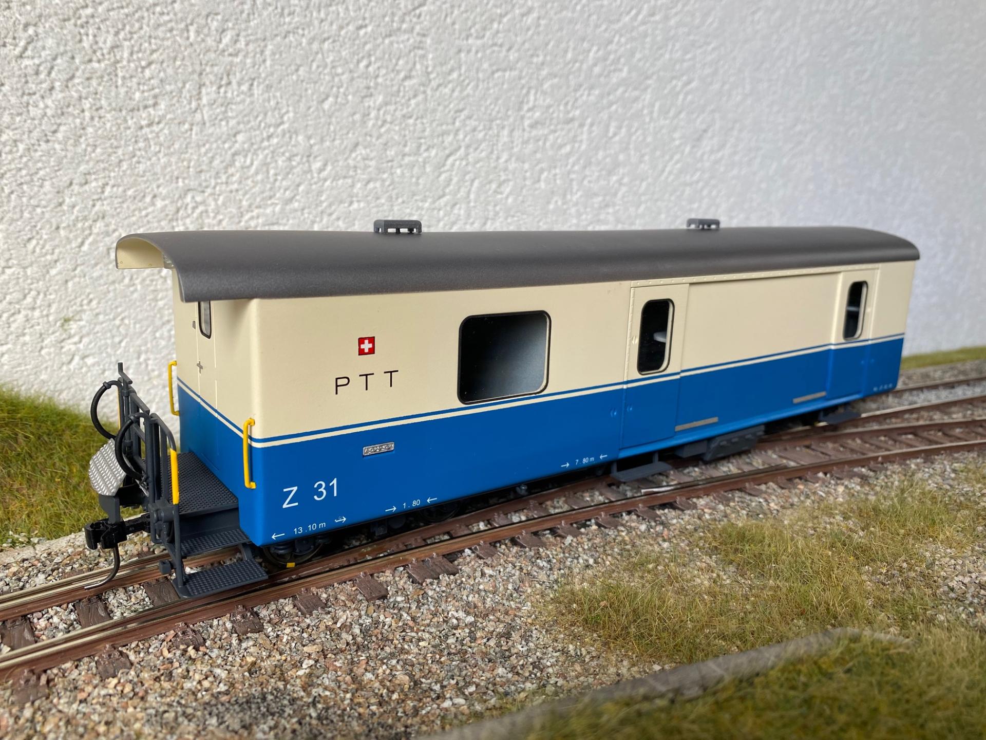 Reproduction du fourgon postal Z31 de la compagnie Montreux-Oberland-Bernois